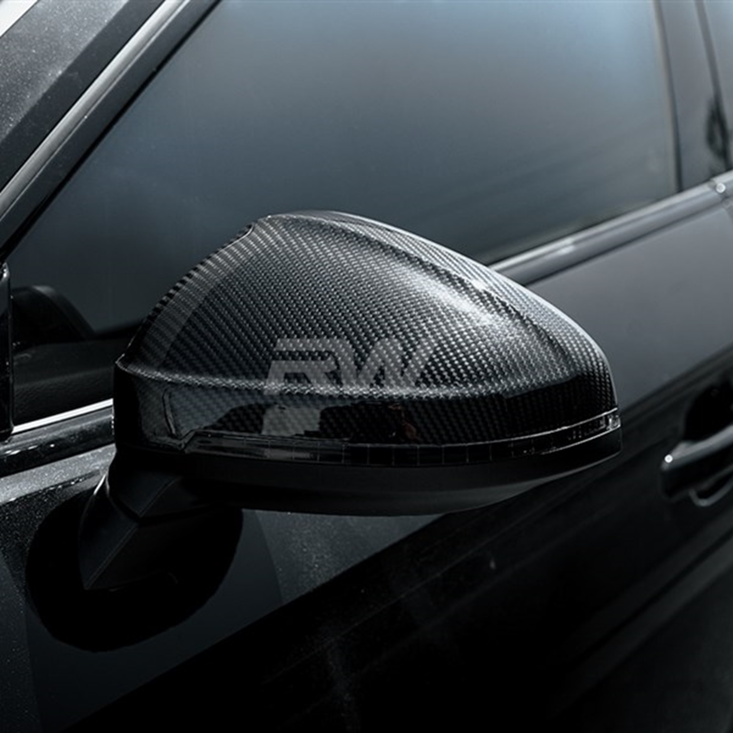 Are you looking to improve the head on and side profile appearance of your Audi B9 A4/A5 S4/S5? RW Carbon has you covered with these beautifully constructed carbon fiber mirror replacements. Coming with or without a lane assist option, these are not the typical mirror covers, but rather a full replacement that takes the place of your housing. These replacements are made out of durable and lightweight carbon fiber; that will outlast your Audi. Each set is finished off with a deep crystal clear coat that will help them looking new for years to come. Pick up a set of B9 A4/A5 S4/S5 carbon fiber mirror replacements today and see the dramatic difference it will make on your ride. These are replacement mirror covers and take the place of the existing one. Not mirror cover overlays.
