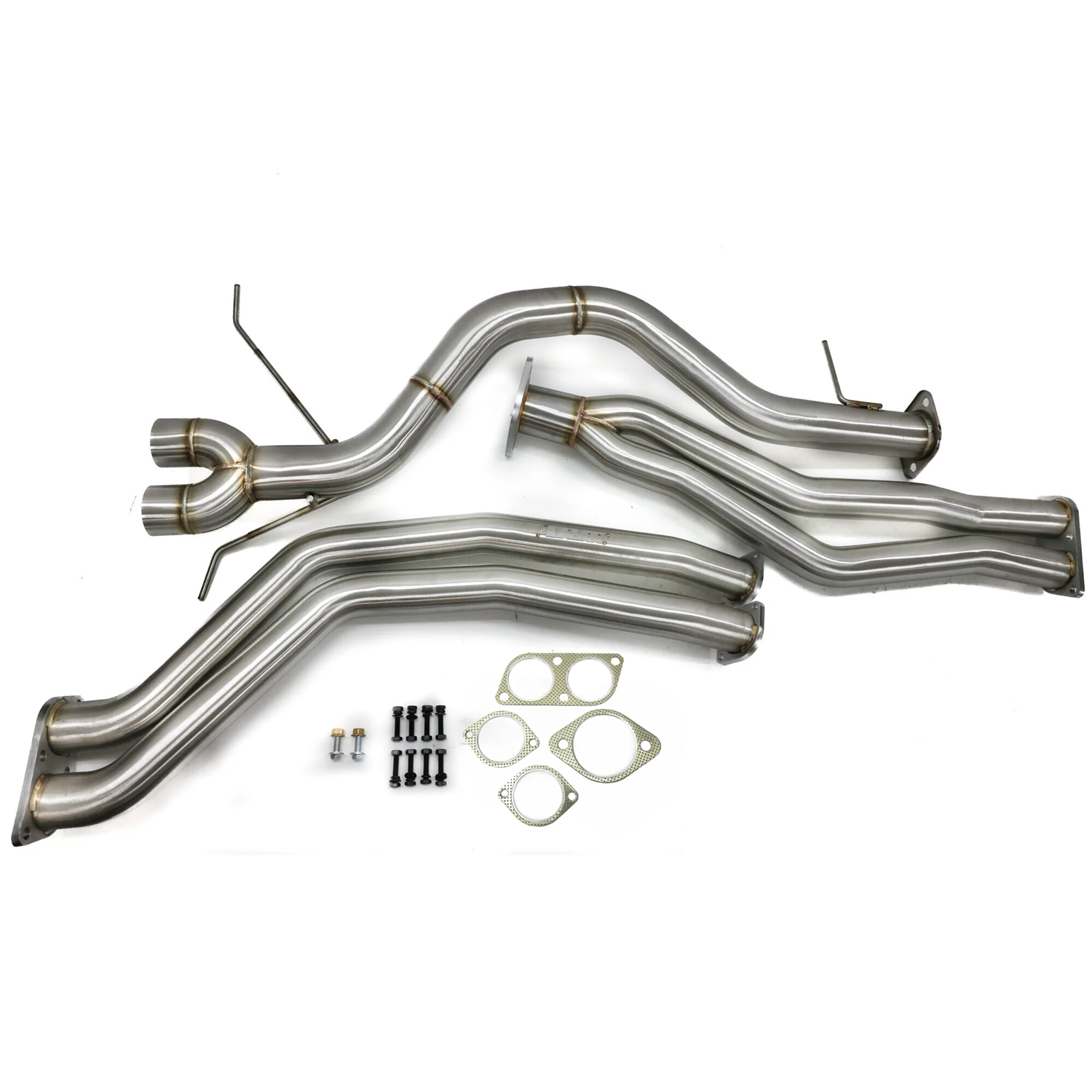 The ARM N55 135i Race Exhaust is built with high-grade TIG welded SS304 stainless steel.  The ARM 135i Race Exhaust includes a front midpipe, rear midpipe, axle back section, exhaust tips, as well as installation hardware and gaskets.