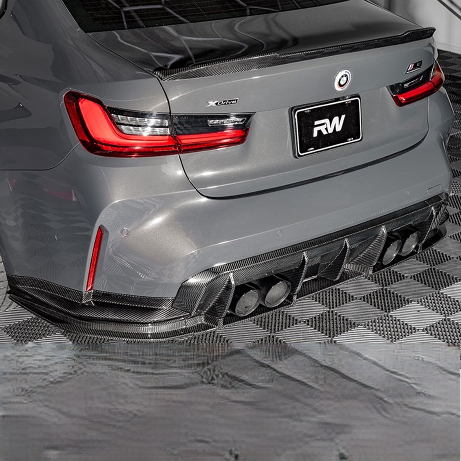 Enhance the rear style of your 2021+ G80 M3 with this sleek 3-piece RWS Carbon Fiber Lower Diffuser. Designed to give your rear end a sporty flair, pairing perfectly with any other carbon fiber parts you may have on your G80. Made with genuine 2×2 carbon fiber weave and finished with a clear coat to prevent damage over time, our lower diffuser is both stylish and durable. Installation is straightforward, using screws to attach just below the factory gloss black diffuser and rear bumper splitters as well as our BMW G8X M3 M4 Carbon Fiber Outer Diffuser Trim and our BMW G80 M3 OEM Style Carbon Fiber Diffuser. If you have any questions regarding this G80 M3 RWS Carbon Fiber Lower Diffuser, feel free to give us a call at 714-328-4406!