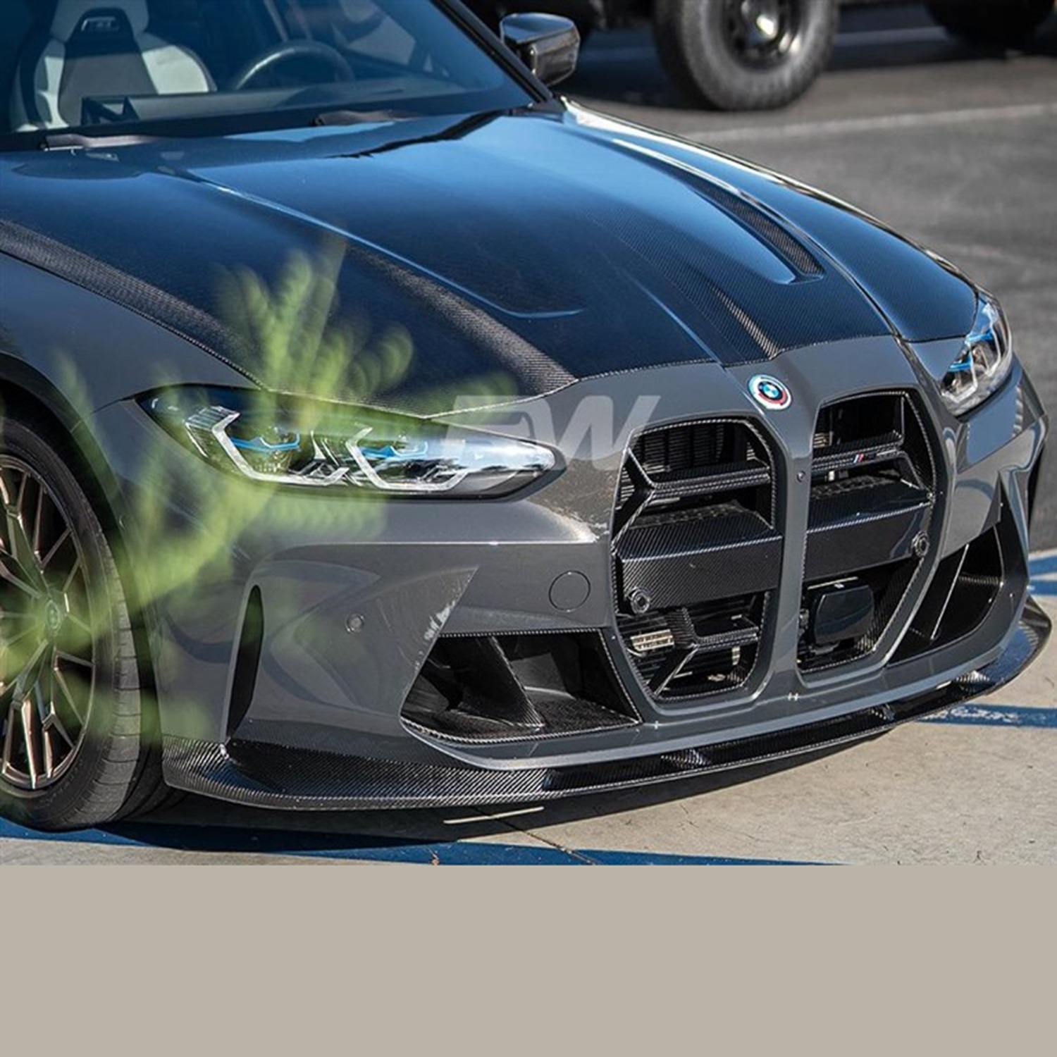 RW Carbon now presents a complete Carbon Fiber CS Style Hood for your new BMW G80 M3 or G82/G83 M4, delivering a significantly more dynamic and assertive aesthetic compared to the stock hood! This hood’s installation is a hassle-free bolt-on process, requiring no specialized modifications to your BMW. Each hood is meticulously handcrafted from authentic carbon fiber, ensuring a seamless match with any other RW or OEM components you’ve integrated into your vehicle. Each hood is backed by RW Carbon’s unwavering commitment to superior fitment and quality, a hallmark cherished by countless M3 & M4 enthusiasts. Our CS hoods come equipped with integrated studs, setting them apart from alternative options on the market that deviate from the OEM mounting method. Beyond its enhanced visual appeal on your vehicle, this RW hood boasts a remarkable 50% reduction in weight compared to the OEM counterpart. Elevate your G8X M3 or M4 today with a brand-new carbon fiber CS hood.