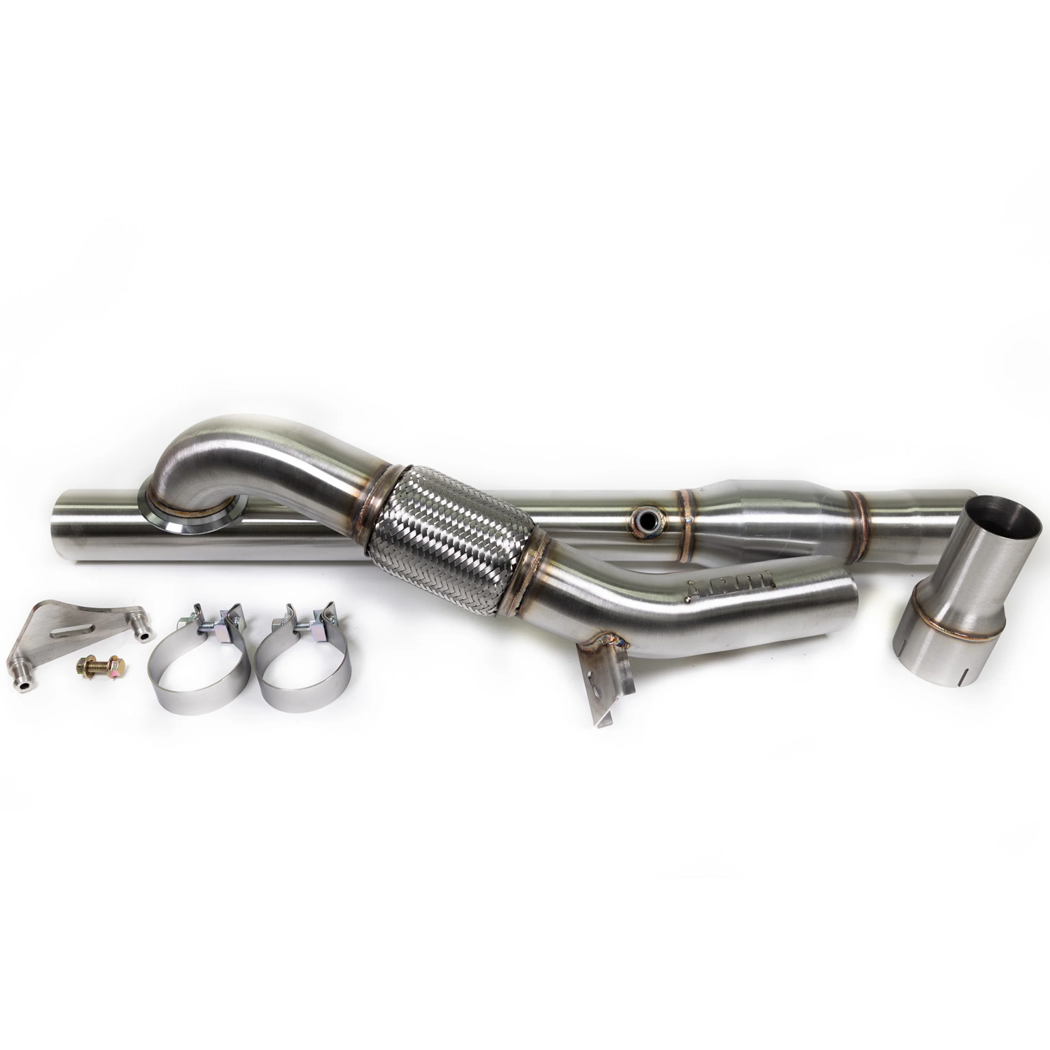 The ARM MK6 GLI Catted Downpipe is designed with a 200 Cell Sport Catalyst in the midpipe section. You will notice your GLI has a growl on startup and is much louder on wide open throttle. On part throttle it is a very subtle increase in tone, but when you put the pedal down you will notice a large change in exhaust volume.